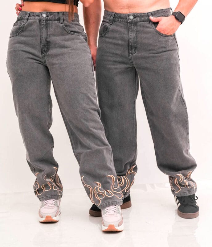 Jean Baggi Gris Bota Fuego