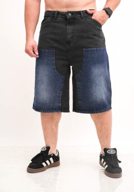 Bermuda baggi negra parches azul