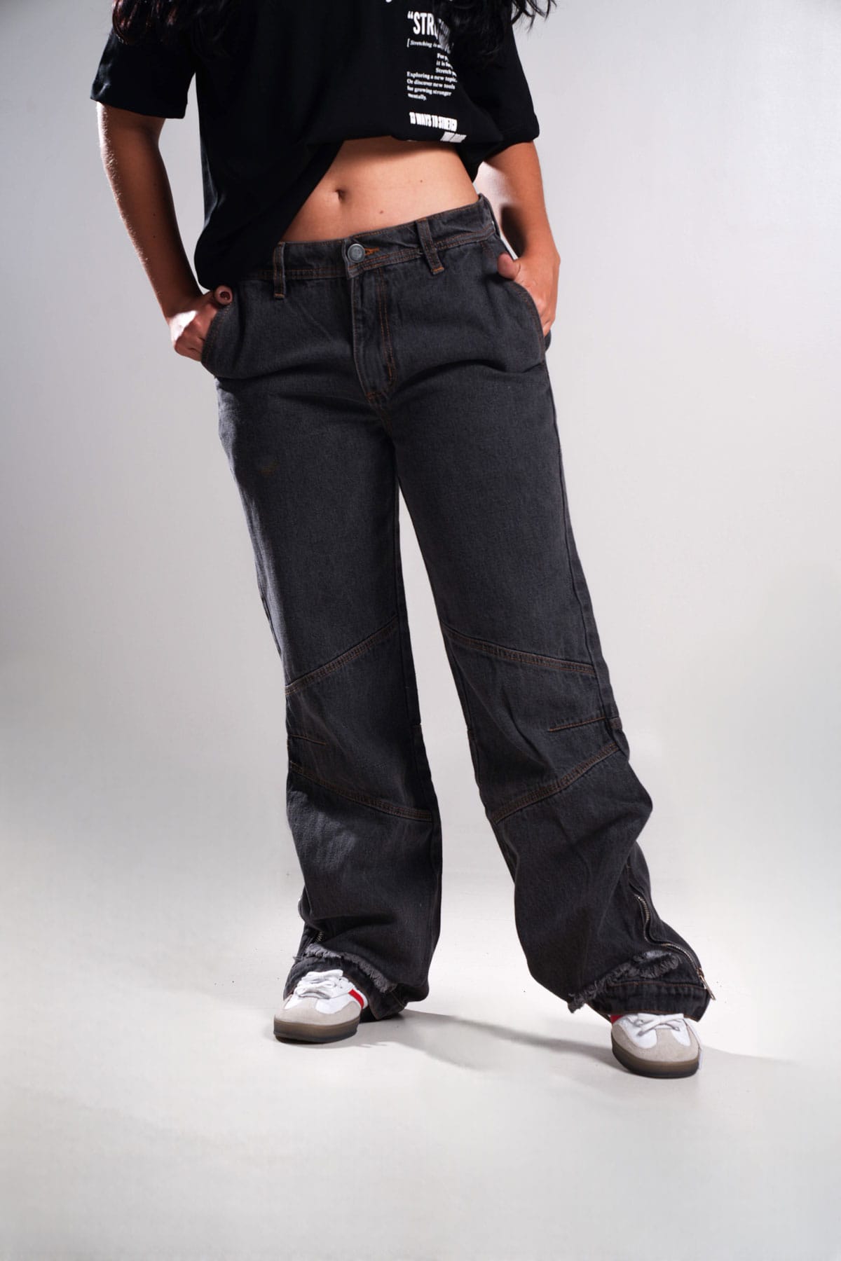 Pantalón Baggi Negro Costura Blanca